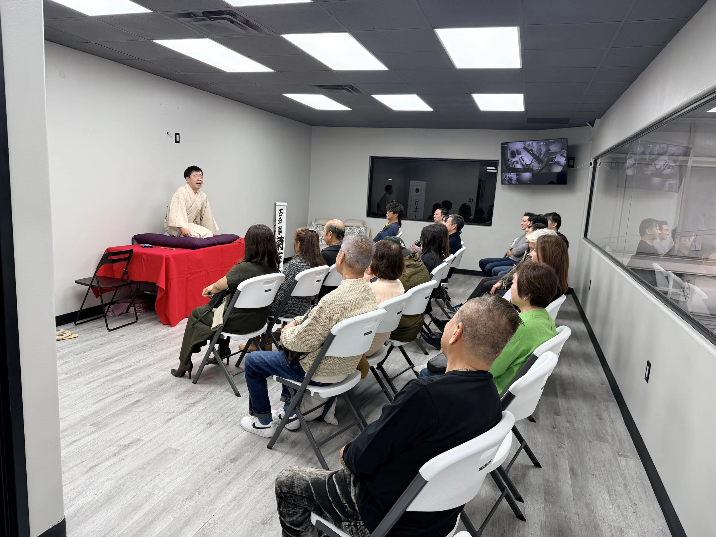 12月6日土曜日、自動車販売で有名な J. Auto Solutions社 Houston店 の大会議室で、「古今亭菊志ん師匠の落語独演会」が開催されました。