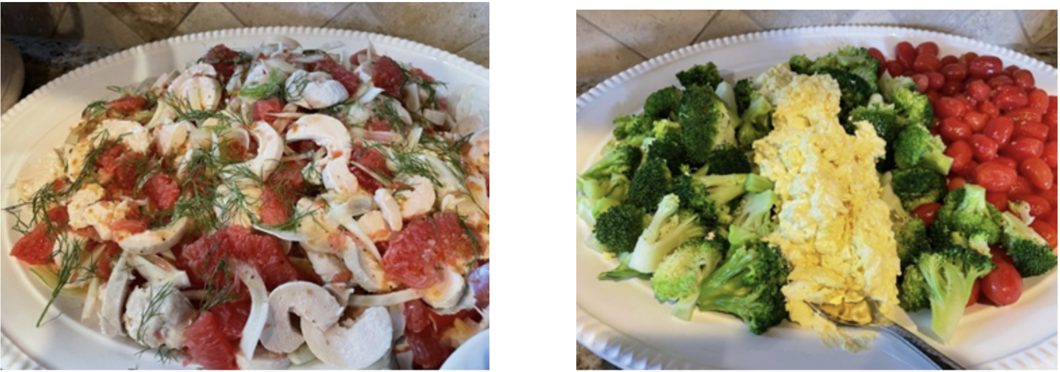 (写真左:フェンネルサラダ、自家製鶏ハムとグレープフルーツ) (写真左:カリフラワーピラフ)